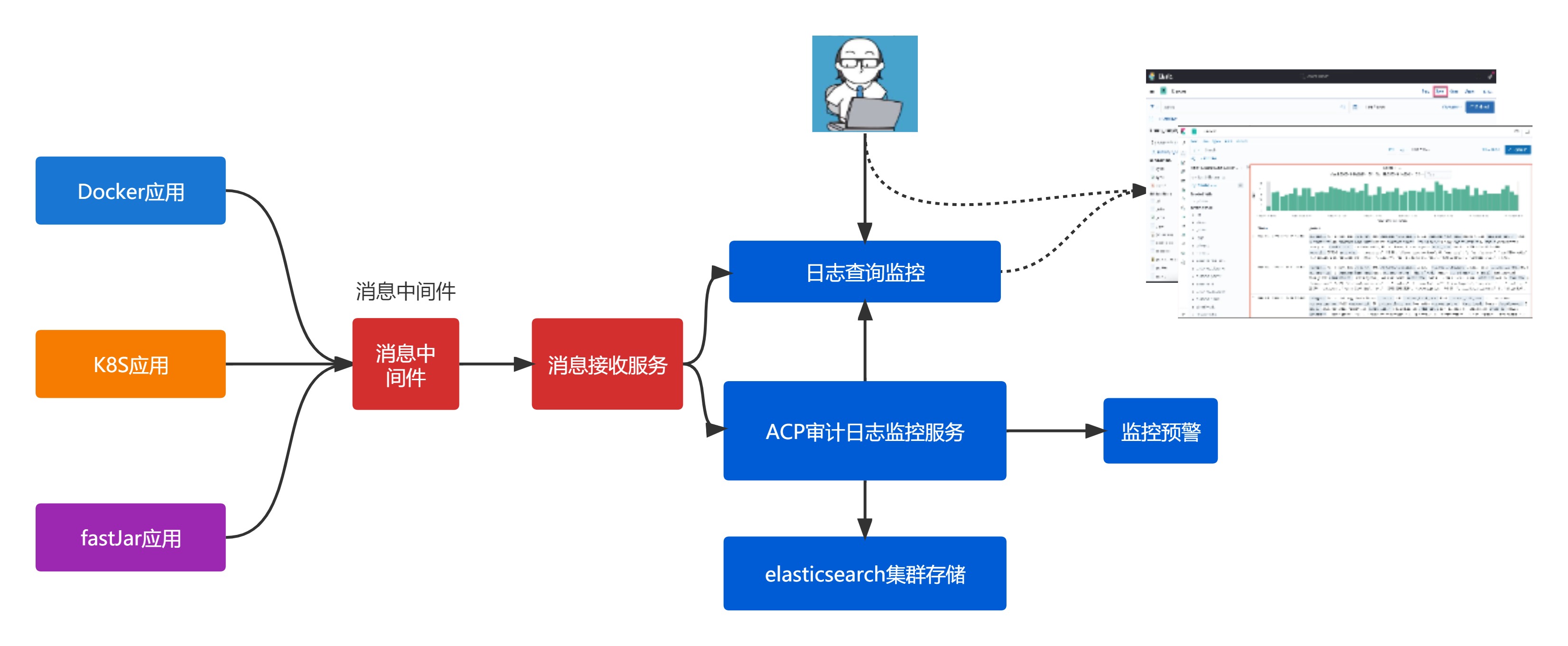 對于業務應用日志,支持將日志數據投遞至日志主題中,包括redis/kafka等,輕量級的日志序號生成管理。